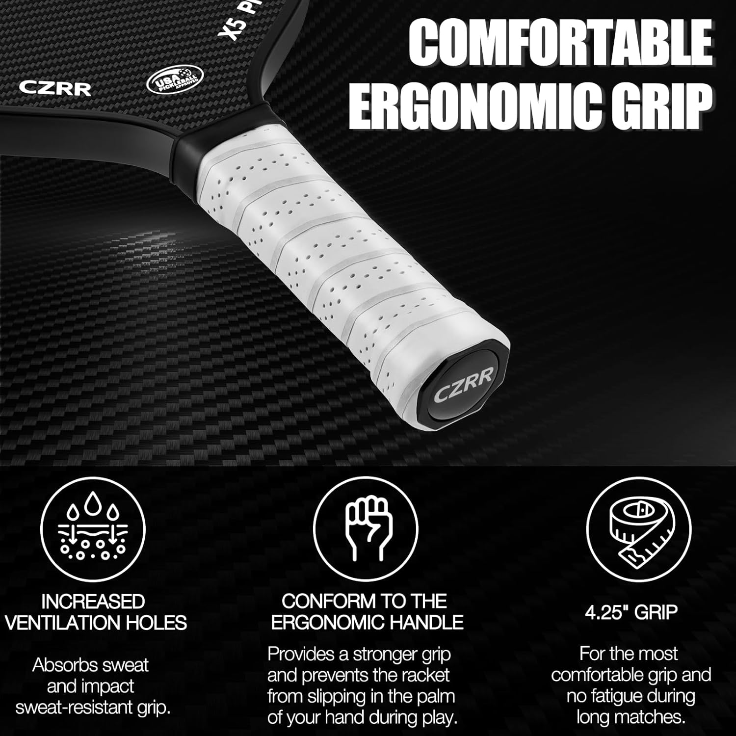【Full Control Comfortable Grip】 The grip is designed with soft artificial leather and sweat-wicking ventilation holes, it’s an anti-slip, abrasion-resistant, and long-lasting one-piece grip you will never get fatigued after longtime play, meanwhile minimizing slippage to give you perfect wrist movement and flexible rotation.