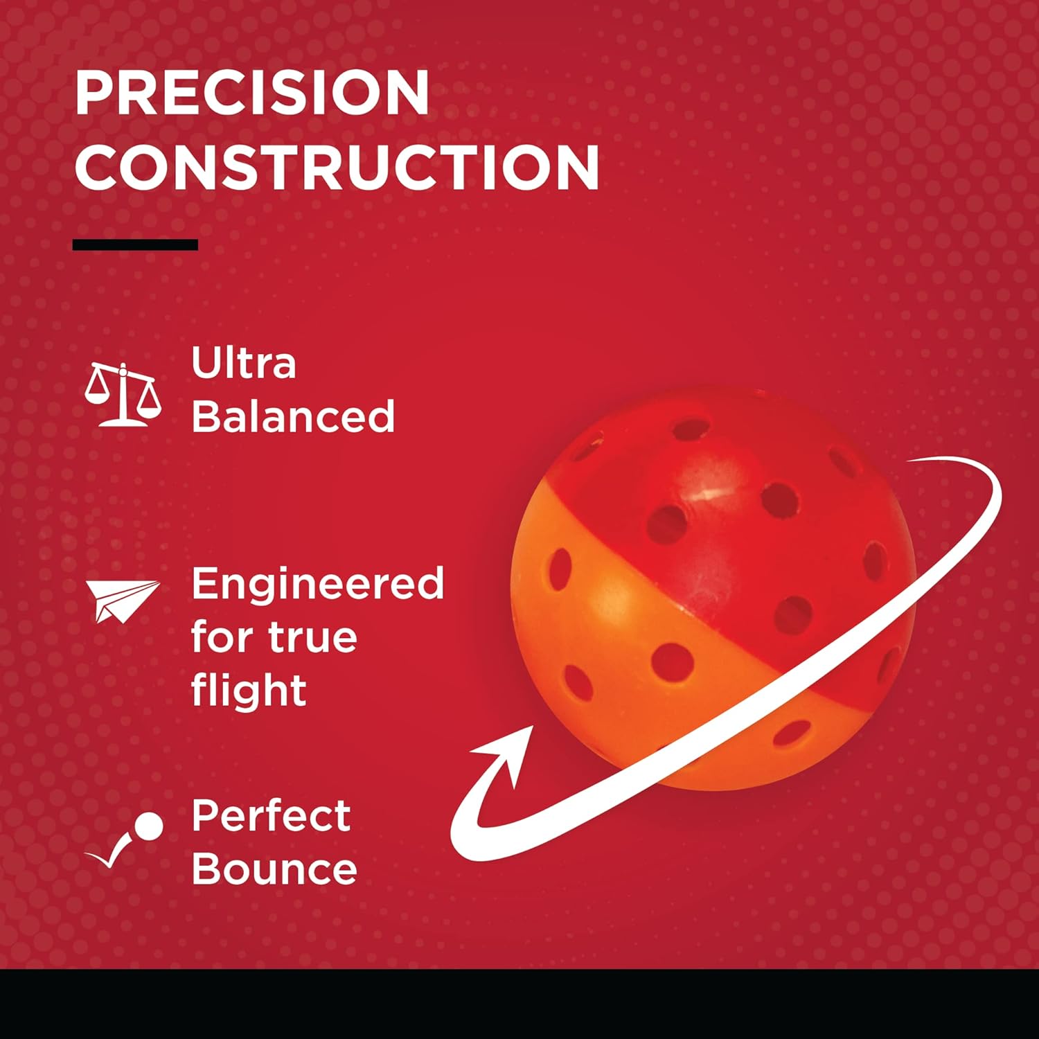 Durable Two-Tone Design: These outdoor pickleballs are designed to withstand rigorous play. With high visibility yellow/red and green/purple color combos, they’re the perfect pickleball accessories for any pickleball court or training session.