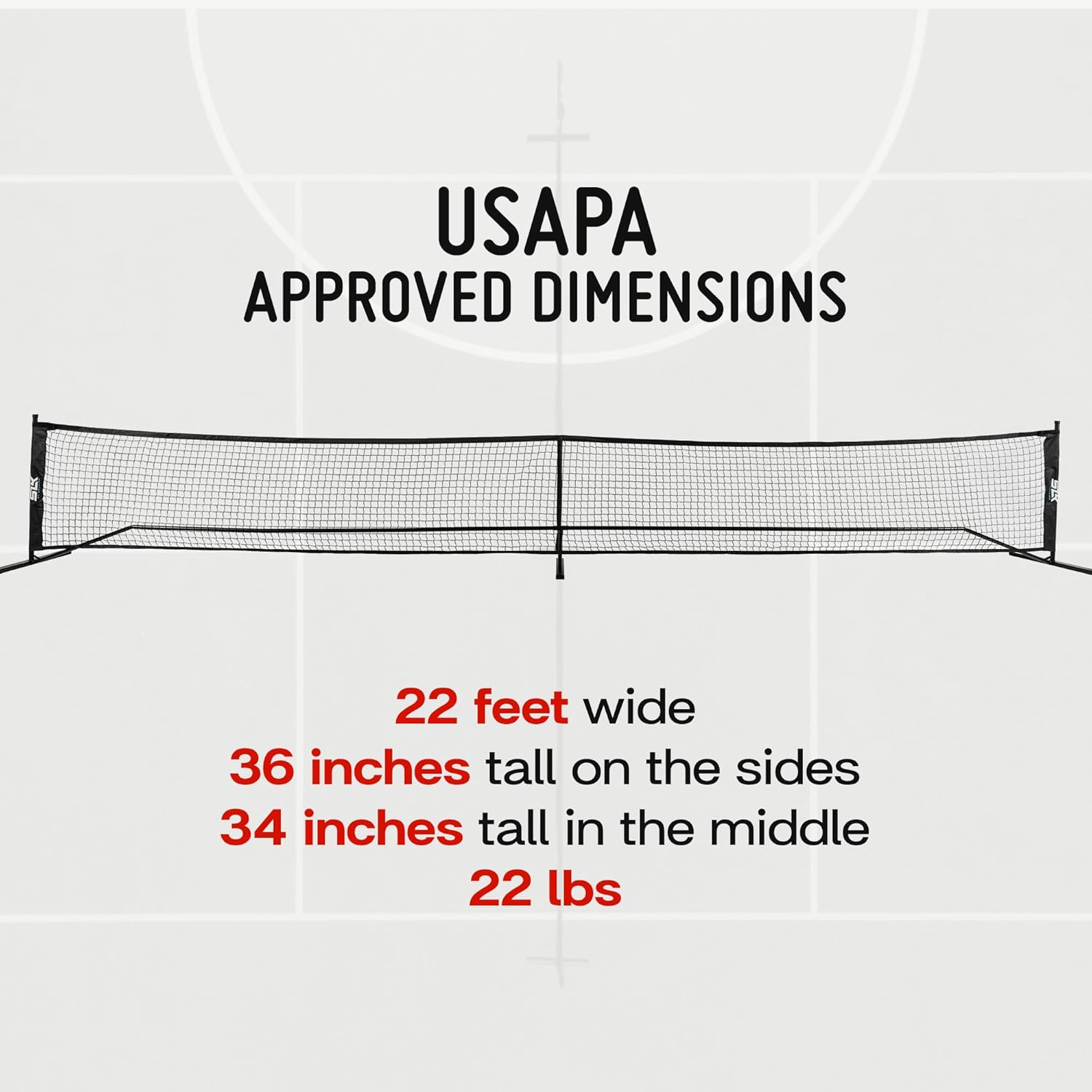 USAP approved dimensions: 22 feet wide x 36 inches tall on the sides x 34 inches tall in the middle