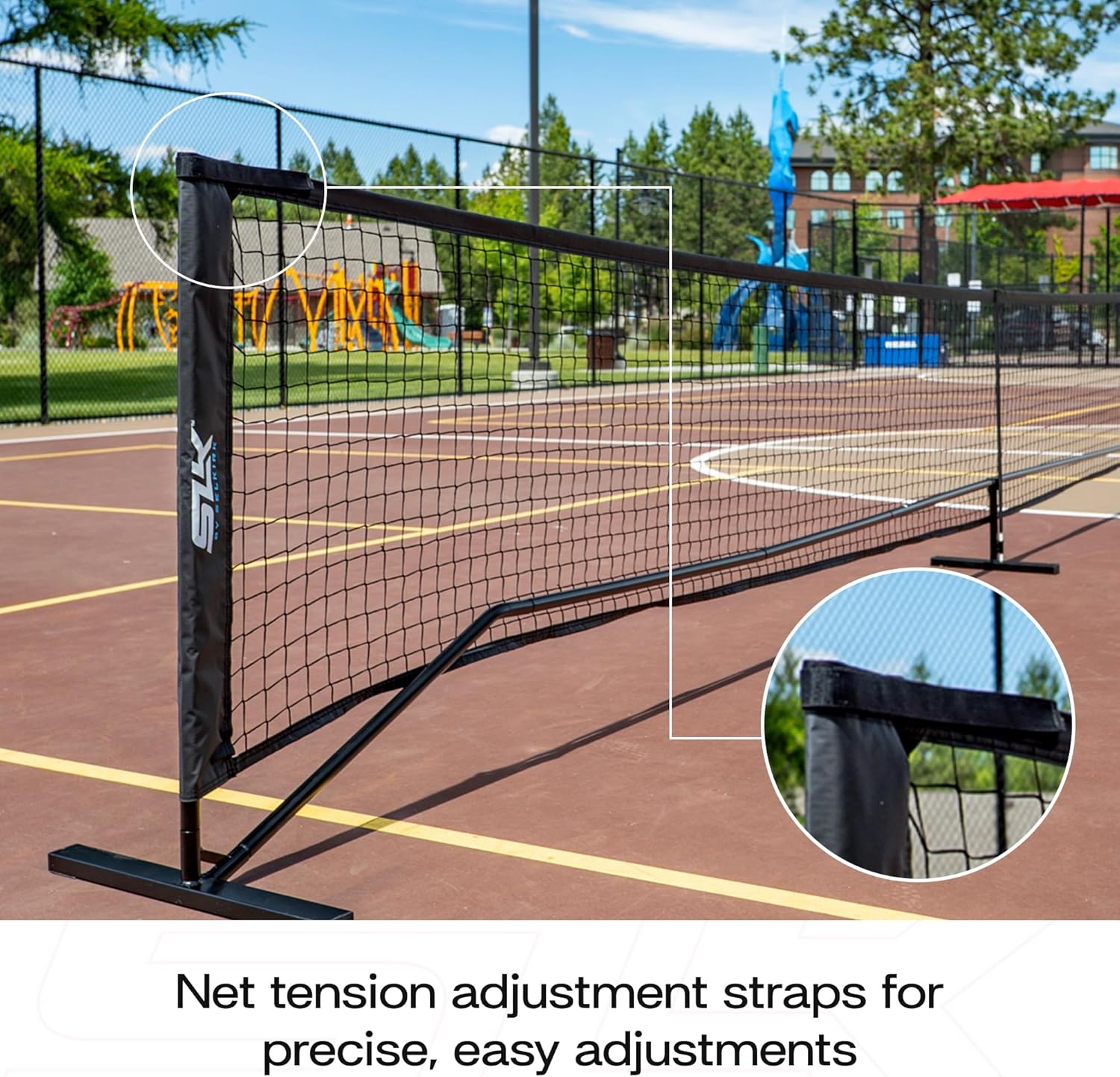 Net tension adjustment straps for precise, easy adjustments