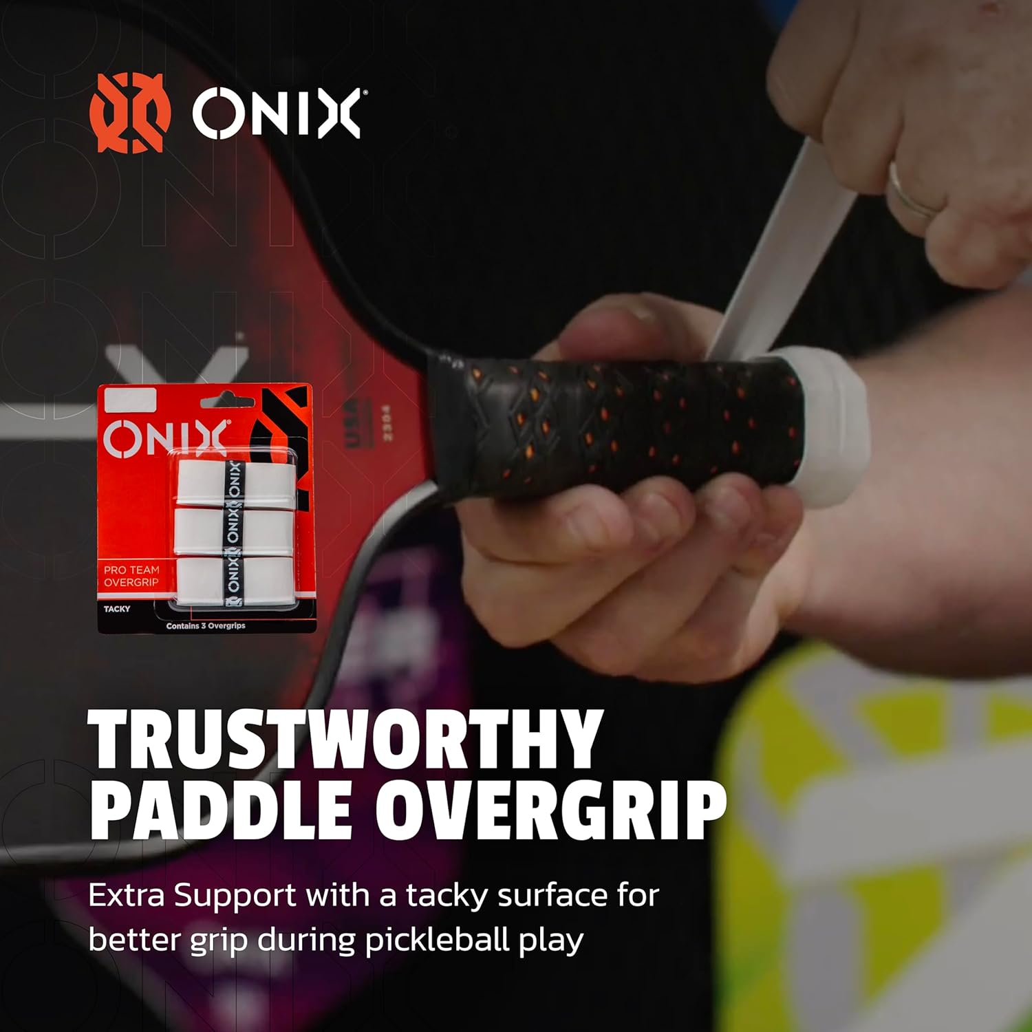 The ONIX Pickleball Paddle Overgrip provides a tacky surface for excellent grip during pickleball play. The overgrip maintains paddle feedback to the hand and adds extra comfort and security for pickleball players of all ages and skill levels. Choose from two colors — white and black.