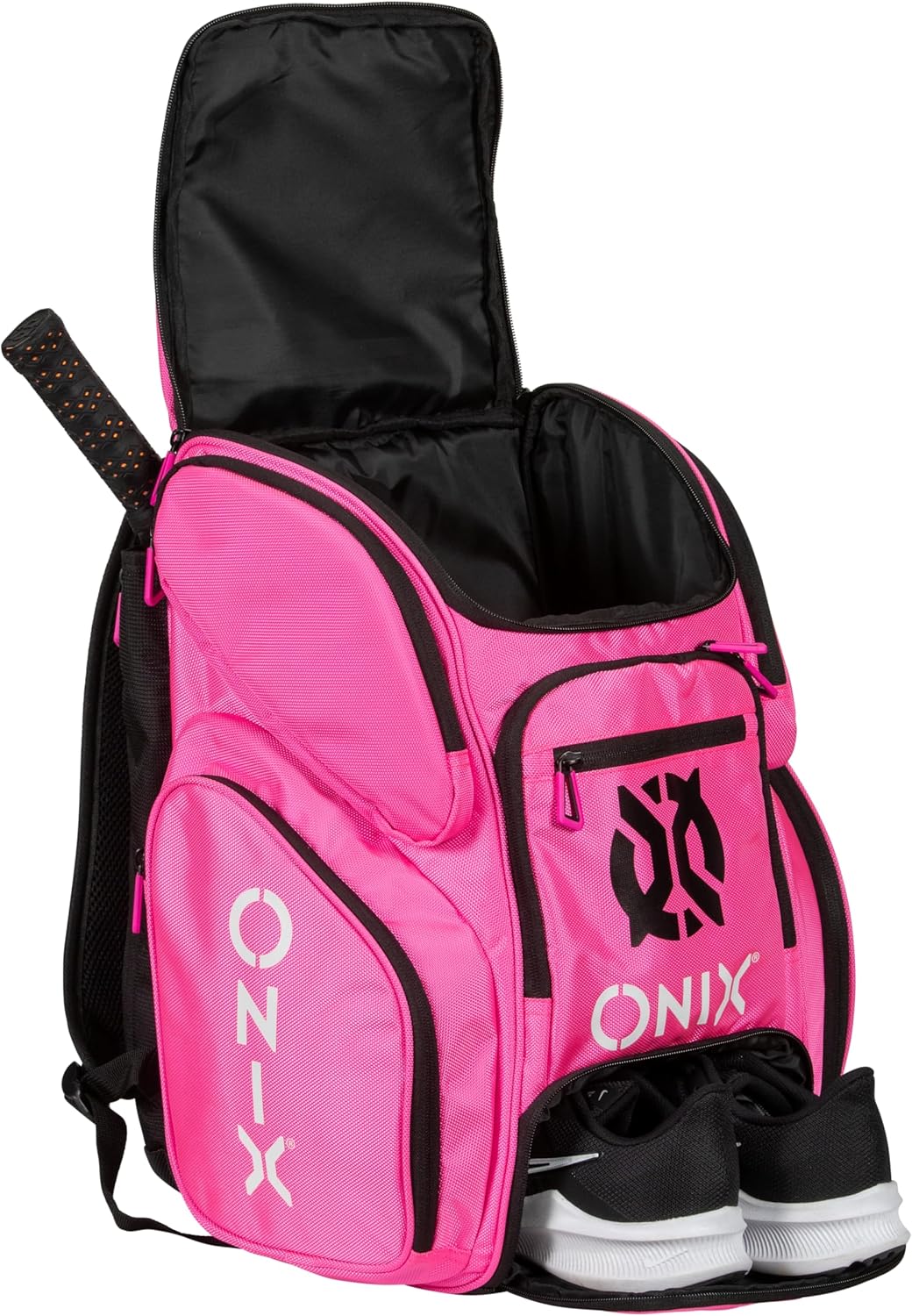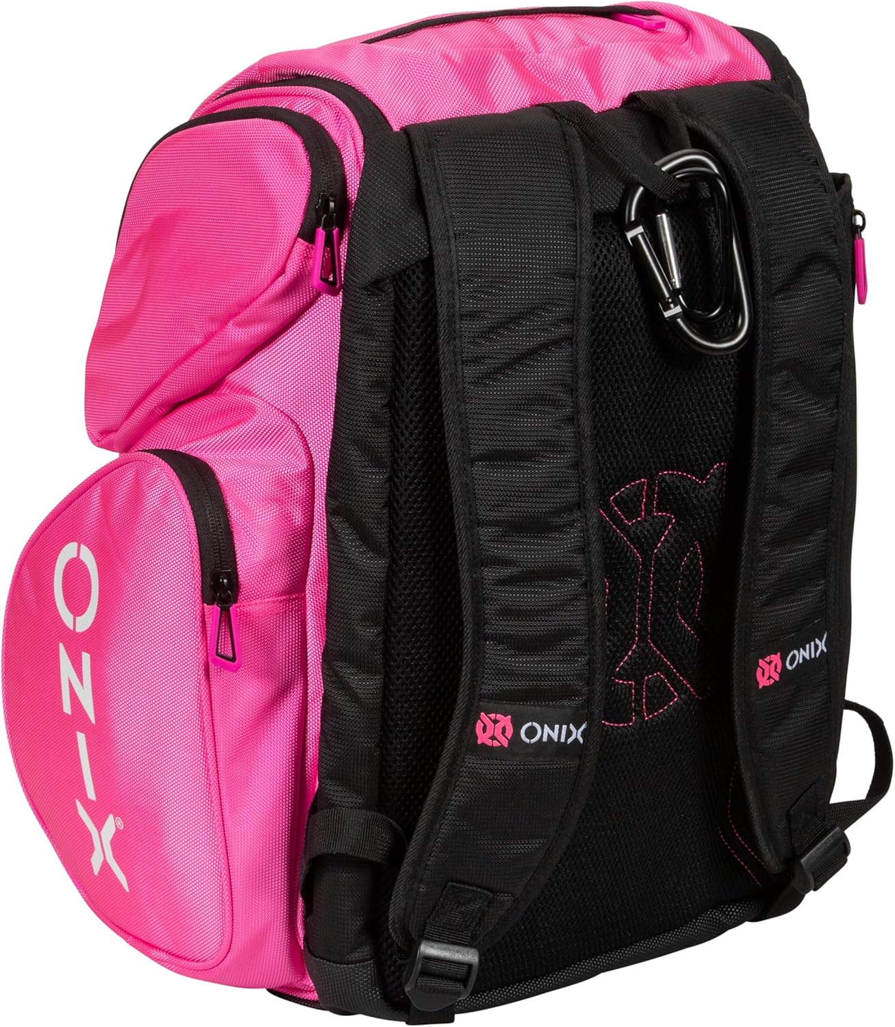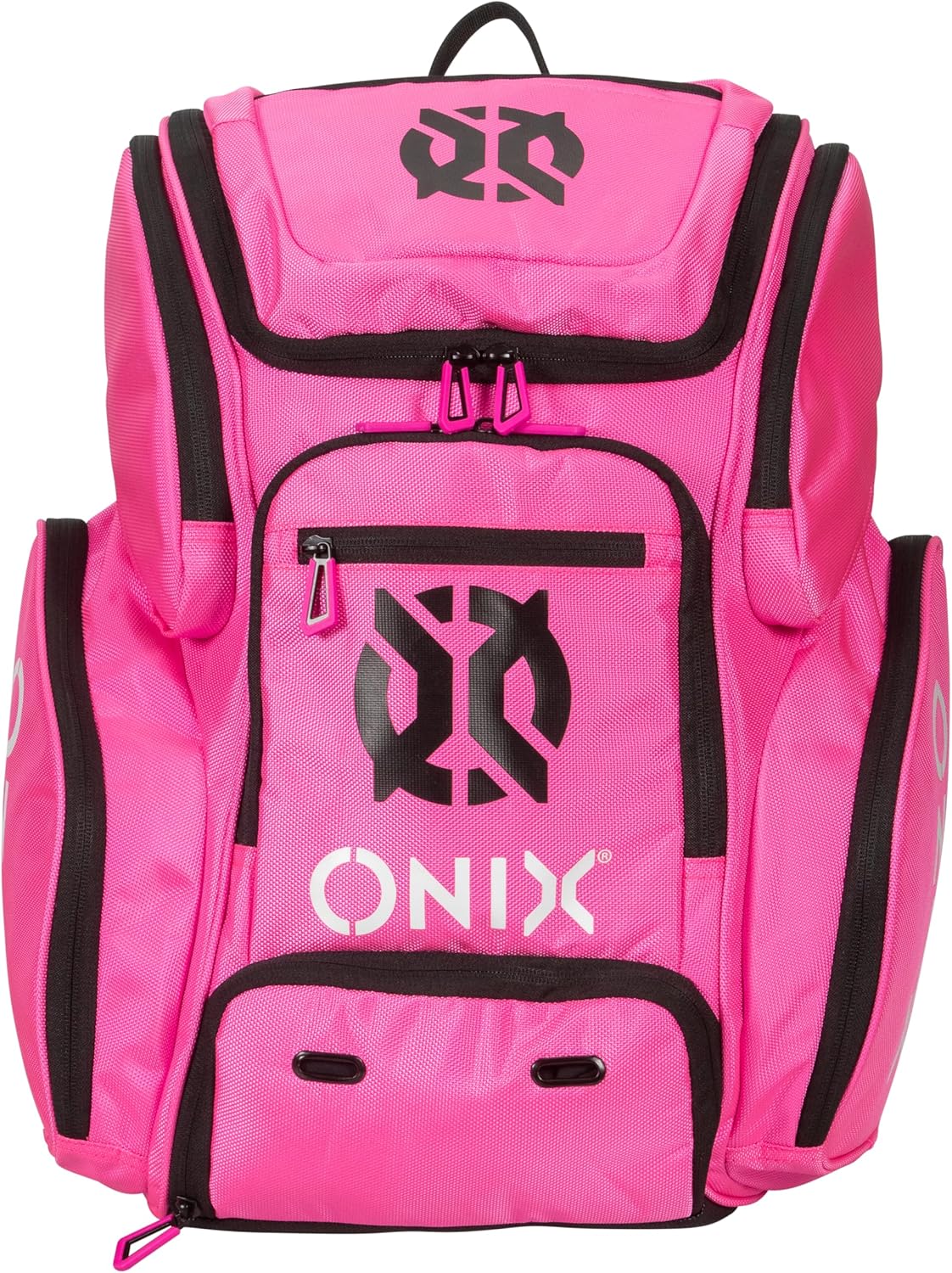The ONIX Pickleball Backpack is perfect for any day at the court. Not only for style of course, but for anything you might want to store in your backpack—it has all the room! Show up to the courts with everything you need with our ONIX Pickleball Backpack. Designed to carry anything from pickleball paddles, balls, to apparel, and water bottles in six spacious zippered storage areas to keep this equipment safe and secure during travel. Our ONIX line of backpacks and bags are perfect for any type of storage needed and the new Pickleball Backpack even comes with an extra pocket for storage at the top as well as two haul straps to attach even more things to the bag; measuring 19″ L x 14″ W x 9″H. Plenty of pockets to protectively hold everything you may need, perfect size to carry around, made to last, and comes in multiple different colors. Get yours today!